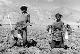 TIBET. A husband and wife seeding in spring. 2001.