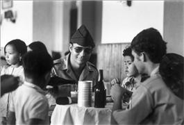 South Vietnamese helicopter crew in officers club in Kontum airbase....