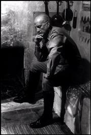 Madrid, Spain 1966. Sweeping up at the castle of Medina Celi....