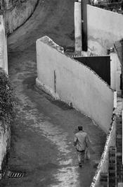 Man watching the main street, the Rue Michelet, where French...