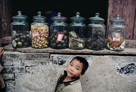 CHINA. Guangxi. 1980. Pharmacy of Xingping, a village situated...