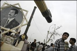Basra. Effigy of Iraqi president Saddam HUSSEIN.