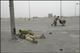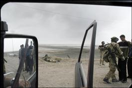 These images document the presence of British troops in the region, creating a water pipeline to serve Um Qasr, as well as operating a checkpoint along the road to Basra, where heavy bombardment has caused large numbers of Iraqi civilians to try to flee, as the war for control of the city rages.They also document the delivery of humanitarian aid to Iraqi villagers near the southern town of Safwan.