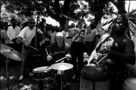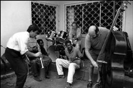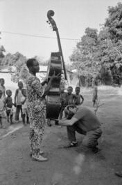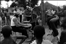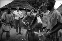 Improvised concert in Faraba, Mali, of the French jazz trio composing...