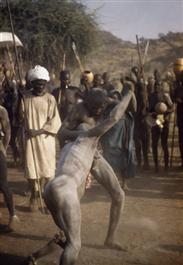 Africa. Sudan. South Kordofan state. 1949. The Nuba people. Wrestlers...