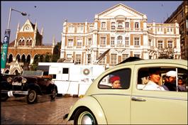 INDIA. Mumbai. Participants of a vintage-car rally at Kalaghoda...