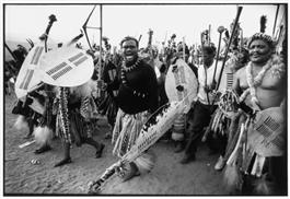 S. AFRICA. Zulu supporters of Chief Buthelexi at a ritual 'reed...