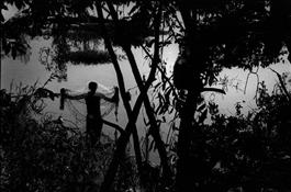 BRAZIL. Piaui state. Teresina. 1996. A fisherman in the Rio Poti,...