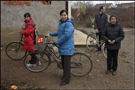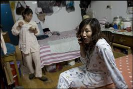 The Kong family are typical mingong. The mother, Kong er Xiang,works as maid («ai») in Shanghai where she shares an apartment with eight other mingong. She earns 2000 yuan -around 200 euros- a month; working every day. Her husband Xi Pin, is a construction worker, on the site with no days off from four in the morning to four in the afternoon. He earns 1500-1800 yuan (150-180 euros) a month. He sleeps at his workplace, in a dormitory. In the village of Fan Wa, in An Hui province, their daughter, fifteen, lives all year-long with her grandmother, not seeing her parents.