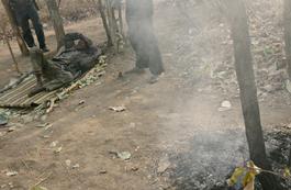 CENTRAL AFRICAN REPUBLIC, C.A.R. Bosangila. February 2007. Burning...