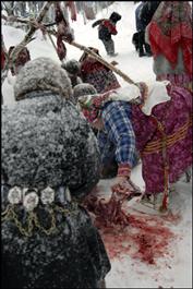 RUSSIA. SIBERIA. Yamalo-Nenets. 2006. Butchering a reindear....
