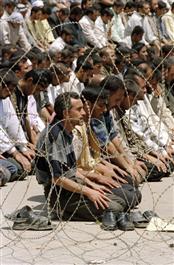 IRAQ. Baghdad. Shi'ites perform their midday prayers in the open,...