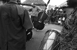 Improvised concert in Faraba, Mali, of the French jazz trio composing...