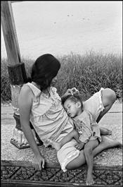 CAMBODIA. Phnom Penh. Child asleep in his mother's arms by the...
