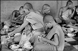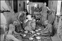CAMBODIA. Phnom Penh. Buddhist monk Sim Sanith eats his lunch...