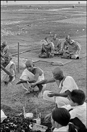 Driven by a desire to understand how a country, whose culture is Buddhist and therefore awake to compassion, could have indulged in the brutality of the Khmer Rouge who in less than four years massacred or starved to death a quarter of the population, Abbas starts his journey through Buddhism in Cambodia.