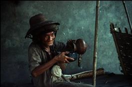 BURMA. 1977. Sandoway. A man drinks rice alcohol.