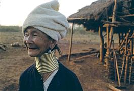 BURMA. A "giraffe woman" of the Shan tribe who began wearing...