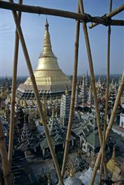 BURMA. Yangon (Rangoon). The gold leaf covered roof of the temples...