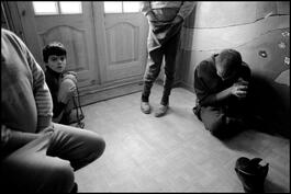 BELARUS. 1997. Novinki Asylum, Minsk. A young boy always crouches...