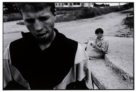 BELARUS. 1997. Novinki Asylum, Minsk. Young boys gather outside....