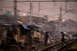INDONESIA. Jakarta. 2007. Slum settlement hugging the railway...