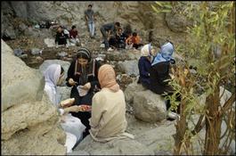 IRAN. Hills above Tehran, Darband. Traditional kids hanging out....