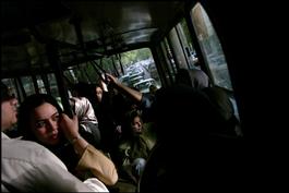 IRAN. Tehran. Bus stop near Vanak Square. 2006.