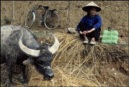 VIETNAM. Cao Bang, man returning with his ducks from the market....