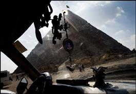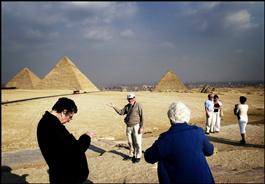 Tourists in front of the pyramids in Giza, Egypt. Jan 2006