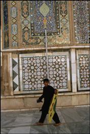 AFGHANISTAN. Herat. A boy, holding a flying kite, in the courtyard...