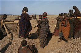 KENYA. Lokichokio in the north, Turkana camels at a woater hole...