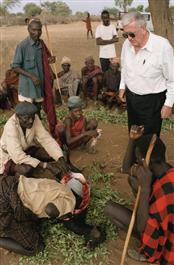 KENYA. Lokichokio in the north, Turkana woman joking with Father...