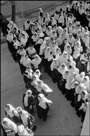 AFGHANISTAN. Kabul. Girls enter class after morning assembly...