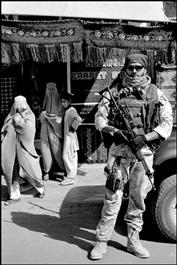 AFGHANISTAN. Herat. A heavily armed Italian soldier stands guard...