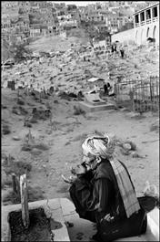AFGHANISTAN. Kabul. A man prays over a tomb in the Shaki Saeb...