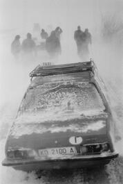 ALBANIA. 1994. Snow blizzard on the road to Korce.