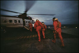 G.B. ENGLAND. Diving bell on North Sea oil rig. 1985.