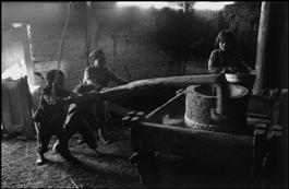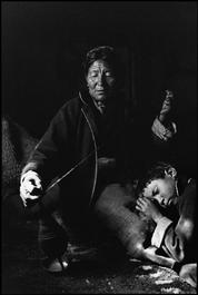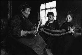 TIBET. Xigaze. 2000. Mother-in-law spinning and daughter-in-law...
