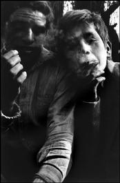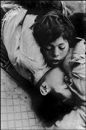CHILE. Santiago. Children under a bridge of Mapocho river.