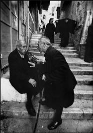 Greek Orthodox men waiting for Easter celebrations in the old...