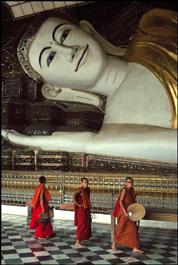 BURMA. The Great Reclining Buddha, northern Yangon (Rangoon)....