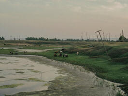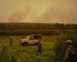 RUSSIA. Siberia. June 2021. Fields covered in forest fire smoke....