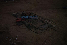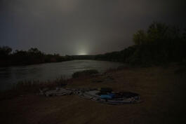 USA. ROMA, TX. A deflated boat used for migrant crossings at...