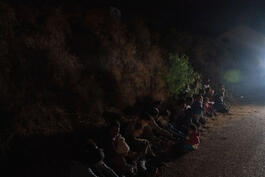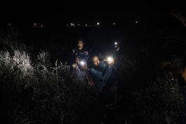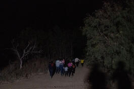 USA. ROMA, TX. Migrants who had lost the trail from the Rio...