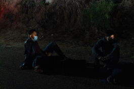 USA. ROMA, TX. Migrants who had lost the trail from the Rio Grande...