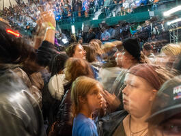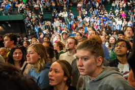 USA. Lansing, MI. 2024. The crowd gathers to hear Vice President...