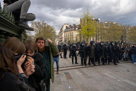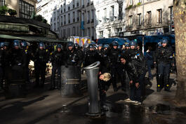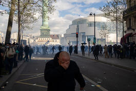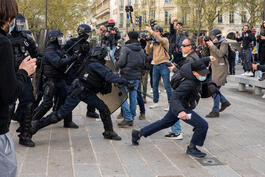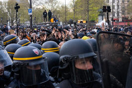 FRANCE. Paris. April 2023. Retirement law protesters clash with police.