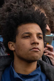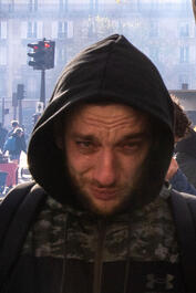 France. Paris. 2023. Portraits of protestors at Place de la Republique....