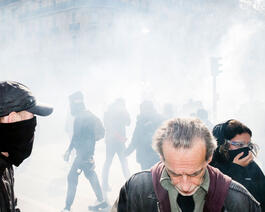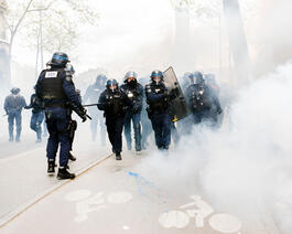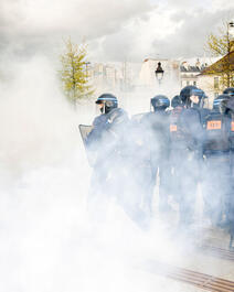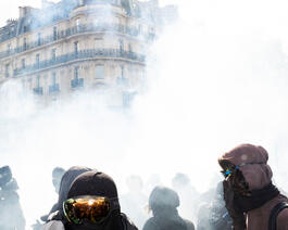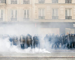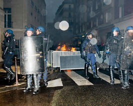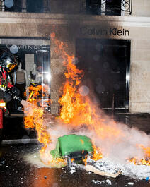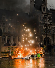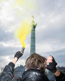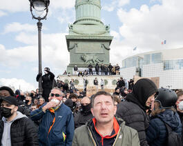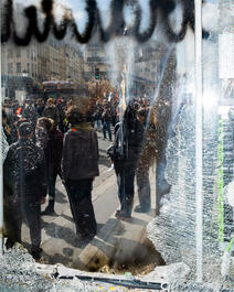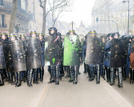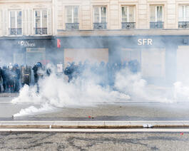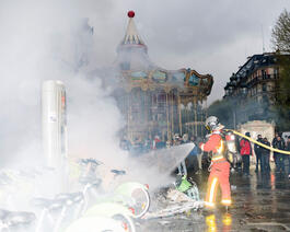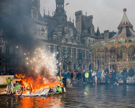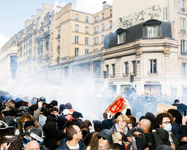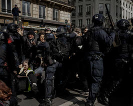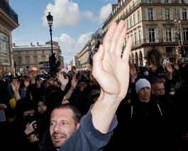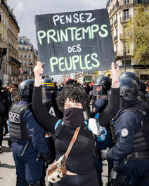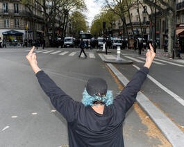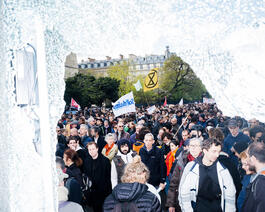 FRANCE. Paris. 13 April 2023. Protesters opposing President Emmanuel...